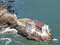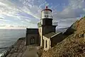 Point Bonita war der letzte Leuchtturm in Kalifornien, der in den Automatikbetrieb überführt wurde. Die auf einem Felsplateau liegende Anlage ist heute über eine Brücke erreichbar, die in ihrer Gestalt der Golden Gate Bridge nachempfunden ist. | |
