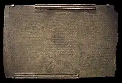 Teile einer Version des Textes aus flavischer Zeit sind in einer 1870/71 entdeckten Bronzeinschrift erhalten. Es handelt sich um vier Tafeln mit Abschnitt 61–82, 91–106 und 123–134.