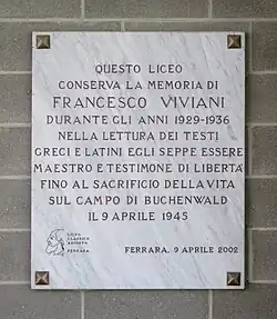 Im Jahr 2002 wurde das Atrium des Gymnasiums dem Gedenken an Giorgio Bassani gewidmet. Der Schriftsteller machte dort 1934 sein Abitur und verarbeitete später in seinen Werken seine Schulerfahrung in Ferrara.[8][9] In diesem Raum wurde eine Skulptur von Annibale Zucchini aufgestellt.