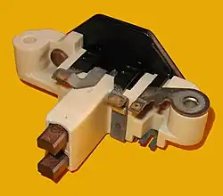 Bei durch Dauermagneten erregten Lichtmaschinen (in vielen Motorrädern und auch Quads) wird die Ausgangsspannung in einem kombinierten Gleichrichter/Laderegler konstant gehalten. Thyristoren ermöglichen, ähnlich wie bei einem Dimmer, den Einschaltzeitpunkt in der leitenden Richtung so zu steuern, dass ein mehr oder weniger großer Teil der von der Lichtmaschine zur Verfügung gestellten Leistung gleichgerichtet und in das Bordnetz eingespeist wird. Bei dieser Bauart muss der Regler die gegenüber der Erregerleistung wesentlich größere Ausgangsleistung des Stromerzeugers (über einen weiten Drehzahlbereich) beeinflussen, was erst mit dem Aufkommen von Leistungshalbleitern möglich wurde. Vorteil dieser Bauart ist, dass sie ohne Schleifringe oder Kollektoren auskommt.