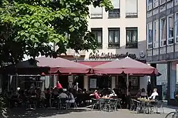 Um den Liebfrauenberg herum gruppieren sich Geschäfte, die Filiale eines Kreditinstitutes, eine Apotheke und Gastronomiebetriebe. Cafés bieten je nach Witterung auf dem Platz Sitzgelegenheiten an, darunter ein Eissalon. Eine Metzgerei bietet kalte und warme Speisen zum Mitnehmen oder Vor-Ort-Verzehr an.