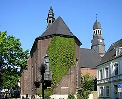 Die ehemalige Minoritenkirche wurde 1786–1792 errichtet. Die Minoriten der Kölner Minoritenprovinz erhielten 1785 die Erlaubnis zum Kirchbau unter der Voraussetzung, dass sie vorher ein Gymnasium eröffneten.[1] Das Kirchengebäude brannte 1945 vollkommen aus und wurde bis 1955 wiederhergestellt.