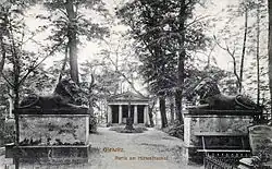 Zunächst standen die Löwen auf dem Hüttenfriedhof, wo sie den Eingang schmückten und einander gegenübergestellt wurden. 1938 wurden sie in den Stadtpark verlegt und vor dem dortigen Mausoleum aufgestellt. Während das Mausoleum nach 1945 zerstört wurde, standen die Löwen dort bis 1998, bis sie im Zusammenhang einer Umwidmung des Standortes zu einem Mahnmal vor dem renovierten Palmenhaus aufgestellt wurden.[1]