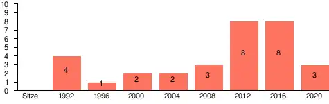 | 1996 | 3,13 | 9. | 1 | 8. | nein |