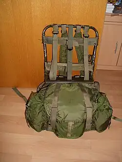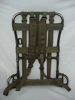 Der U-förmige Rahmen besteht aus dunkel olivgrün lackiertem Aluminiumrohr und hat flache Metallösen, die die verschiedenen Riemen vor dem Verrutschen sichern. Am oberen Teil des Rahmens werden die gepolsterten Schulterriemen befestigt; der linke Schulterriemen hat einen Schnellverschluss, der ein Abwerfen des Rucksacks erlaubt. Zwei breite Querriemen verbinden die Hauptholme des Rahmens und bilden die Rückenauflage. Der ober Querriemen verfügt über Metallösen für die Haken der M1910-Ausrüstung. Beide Querriemen sind breit genug, um an ihnen Teile der M1956-Ausrüstung mittels Schiebeclips zu befestigen. Am unteren Teil des Rahmens befindet sich ein breiter Gurt als Hüftpolster. Ein ebenfalls dort befestigter Beckengurt verhindert das Verrutschen des Rahmens auf dem Rücken (am abgebildeten Rahmen fehlt dieser Beckengurt – er wurde im Einsatz oft abgenommen, da er ein schnelles Abwerfen des Rucksacks verhinderte). Drei zusätzliche Gurte dienen zum Verzurren von Ausrüstung auf dem Rahmen.