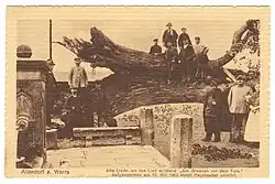 - Postkarte, gelaufen am 14. Mai 1912, mit Foto der gestürzten Linde und handschriftlichem Bericht über ihren Sturz, erhalten in der Historischen Fotosammlung der Murhardschen Bibliothek im Open Repository Kassel (ORKA), der Online-Plattform der Universitätsbibliothek Kassel