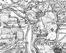 Linden gehörte im Spätmittelalter und der Frühen Neuzeit in eigener Bauerschaft (Lynden) im Amt Blankenstein und Gericht Hattingen zur Grafschaft Mark. Laut dem Schatzbuch der Grafschaft Mark von 1486 hatten die 32 Steuerpflichtigen Hofbesitzer in der Bauerschaft zwischen zwei oirt und sechs Goldgulden an Abgabe zu leisten. Darunter drei Höfe mit Abgaben an das Stift Essen.[8] Laut Dienstgeldregister des Hauses Blankenstein von 1685 wurden zwei Hofbesitzer in der Linder Burschafft mit Albus-Beträgen besteuert.[9] Wie sein Nachbarstadtteil Dahlhausen war Linden ursprünglich landwirtschaftlich geprägt. Beide Ortschaften avancierten später zum ersten größeren Kohlerevier der heutigen Stadt Bochum. Viele kleine Stollenzechen konsolidierten mit fortschreitender Technik zu großen Bergwerken wie zum Beispiel die Zeche Baaker Mulde, Zeche Friedlicher Nachbar oder Zeche Hasenwinkel.