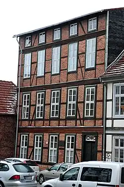 - Nr. 9: 3-gesch. klassizistisches Wohnhaus mit Mezzaningeschoss (D), Fachwerkhaus, Gedenktafel für den Dichter, Kunst- und Literaturhistoriker sowie Jurist und Diplomat Graf Adolf Friedrich von Schack (1815–1894), der hier geboren wurde