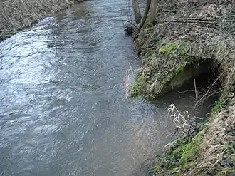 Der Linderbach (Rohr rechts) mündet in die Lohr | ||