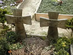 Auf dem Kirchhof finden sich drei schlichte Holzkreuze über den Gräbern von deutschen Soldaten, die am 8., 12. und 15. April 1945 ums Leben kamen.