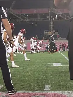 - ↑ Line of Scrimmage. What is Line of Scrimmage? SportingCharts.com, abgerufen am 10. Januar 2018 (amerikanisches Englisch): „There are actually two lines of scrimmage in a football game: one for the offense and one for the defense. The difference between the two lines is approximately the length of a football and is referred to as the "neutral zone".“