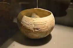 Die Bandkeramiker nutzten anscheinend die verkäste Milch ihrer Rinder.[118] Allerdings unterschied sich die Höhe der Milchproduktion neolithischer Kühe deutlich von der neuzeitlicher Rinder.[119] So tauchten an Fundplätzen kleine, trichterförmige Gefäße mit durchlochten Wandungen auf, die neuzeitlichen Geräten zur Käseherstellung stark ähneln.[120] Auch konnte eine Arbeitsgruppe um Mélanie Salque (2013)[121] Milchfett in Keramikscherben aus bandkeramischer Produktion nachweisen. Ebenso wird die Entstehung der Laktasepersistenz (die Fähigkeit Erwachsener, Milch zu verdauen) mit der bandkeramischen Kultur verbunden.[122][123][124][125]