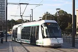 Zum Einsatz kommen 15 dreiteilige Garnituren des Typs Translohr STE 3. Die Züge sind 25 Meter lang, 2,20 Meter breit und 2,89 Meter hoch. Jede Einheit bietet 178 Personen Platz. Die durchschnittliche Reisegeschwindigkeit wird mit 18 km/h angegeben.,[1]