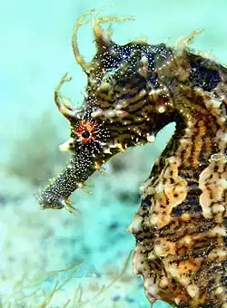 - ↑ a b c d e f g Cathleen Bester: Lined Seahorse. Florida Museum of Natural History, abgerufen am 19. April 2018 (englisch).
