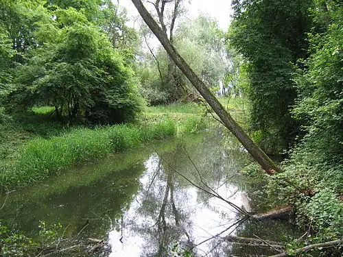 - Zulauf aus dem Baindter, von rechts nahe einer Ziegelei bei der Lipbachsenke auf unter 400 m ü. NN, 2,007 km. Im Mündungskeil viele ehemalige Lehmgruben im Naturschutzgebiet, die heute Seen sind und zusammen eine Fläche von über 4 ha bedecken.