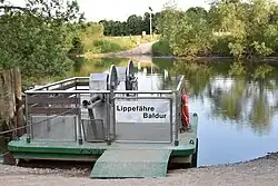 Zusätzlich zu den Brücken gibt es noch vier Fähren: Lupia in Hamm (beim Schloss Oberwerries), Maifisch in Haltern am See, Baldur in Dorsten (zwischen den Stadtteilen Hardt und Holsterhausen) und Quertreiber in Wesel (beim RWE-Umspannwerk Obrighoven). Es handelt sich um unentgeltlich benutzbare Seilfähren für Fußgänger und Radfahrer, die diese selbst mit Muskelkraft betätigen müssen.[31] Früher gab es auf der Lippe eine Vielzahl an Fähren, so beispielsweise in Flaesheim[32] und vom Lüner Ortsteil Beckinghausen zur Eisenhütte Westfalia im Altlünener Ortsteil Wethmar.[33]