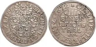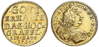 - ↑ W. Hansen: Lippische Dukaten aus dem 18. Jahrhundert. In: Heimatland Lippe, 60. Jahrgang, Nr. 1, Januar 1967, Seite 35.