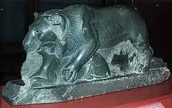 | Löwe, der ein Rind reißt (KHM 8020) | 30. Dynastie, um 350 v. Chr. | unbekannt | Grüner Schiefer | 61,5 × 28 cm | Wien, Kunsthistorisches Museum | Wien KHM 8020 | |