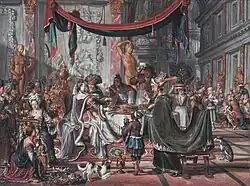 - 1790: Mozarts Oper Così fan tutte erzählt die Geschichte der beiden jungen Offiziere Ferrando und Guglielmo, die glauben, dass ihnen ihre beiden Partner niemals untreu sein würden. Der zynische Don Alfonso wettet dagegen; als Teil seines Plans überbringt er den Damen die Nachricht, dass ihre Männer an die Front berufen wurden. In Verkleidung kehren diese zu der Frau des jeweils anderen zurück und schaffen es nach einiger Zeit, sie auch zu einer Hochzeit zu überreden, wodurch sie die Wette verlieren.[21]