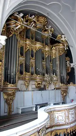 - ↑ Siehe Foto 2016, in Orgel Orgeldatabase noch als erhalten angegeben, nach Elke Lang: Barocke Pracht und schlichte Schönheit, 2014 (möglicherweise schon damals nicht mehr vorhanden)