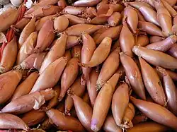 | Schalotte (Allium) | Zwiebeln | milder, sanfter als die Zwiebel, Salate, Fischgerichte, auch als Gemüse | ![]() |