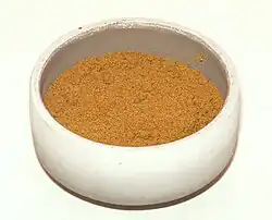 | Asant (Ferula asafoetida) | Harz des Wurzelstocks | In der indischen, pakistanischen, iranischen und irakischen Küche für Schmorgerichte. | ![]() |