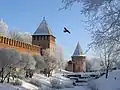 Nowgoroder Kreml | Weliki Nowgorod | 1430er-Jahre | 12,1 | 15 | 6,5 | Der Nowgoroder Kreml wird im Russischen manchmal auch Detinez statt Kreml genannt. Der Begriff Detinez für eine Stadtbefestigung ist älteren Ursprungs als Kreml, was unter anderem darauf hindeutet, dass die Nowgoroder Zitadelle eine der ältesten erhaltenen Festungen Russlands ist. 1992 wurde sie als zweiter russischer Kreml in die UNESCO-Welterbeliste aufgenommen. |