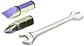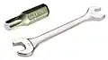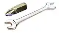 - gängige Schraubenköpfe, auf die das Werkzeug von außen eingreift, können mit einem Schraubenschlüssel betätigt werden, für seltenere Formen wird ein passender Steckschlüssel benötigt, der auch in Form einer Nuss auf den Vierkant eines Handgriffs mit Schaft oder eine Knarre gesteckt wird,