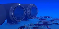 Divescope war eine größere Taucherglocke aus Plexiglas und Stahl mit einem Trockenbereich, in dem man vollständig auftauchen konnte. Sie befand sich in der Lagune vor Nouméa, der Hauptstadt von Neukaledonien in einer Tiefe von etwa 8 m (26 Fuß). Sechs Personen konnten sich darin für eine halbe Stunde aufhalten. Divescope wurde unter anderem für Unterwasser-Hochzeiten genutzt.[31] Die Konstruktion ähnelt Jacques Rougeries Aquabulle (siehe oben). | |
