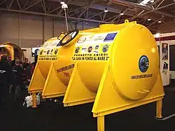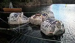 Diese Anlage bestand aus mehreren miteinander verbundenen Zylindern und diente in einer Tiefe von 12 m im Lago di Cavazzo als Unterwasserstation.[13] | |