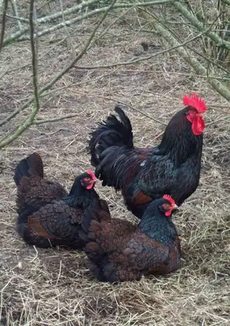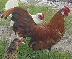 - ↑ Einstufung in die Liste alter einheimischer Geflügelrassen. In: Rote Liste einheimischer Nutztierrassen in Deutschland 2015 ( des vom 30. Dezember 2015 im Internet Archive) Info: Der Archivlink wurde automatisch eingesetzt und noch nicht geprüft. Bitte prüfe Original- und Archivlink gemäß Anleitung und entferne dann diesen Hinweis. (PDF), S. 151.
