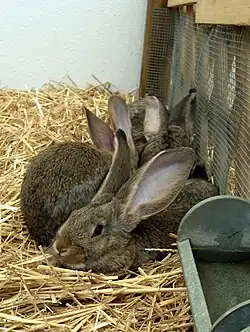 - ↑ Bundesanstalt für Landwirtschaft und Ernährung [BLE] (Hrsg.): Rote Liste einheimischer Nutztierrassen in Deutschland 2015. 2015, Tabelle 6: Bestandszahlen einheimischer Kaninchenrassen 2013, S. 190 f.