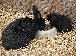 - ↑ Bundesanstalt für Landwirtschaft und Ernährung [BLE] (Hrsg.): Rote Liste einheimischer Nutztierrassen in Deutschland 2015. 2015, Gefährdung einheimischer Nutztierrassen – Kaninchen, S. 157 ff.