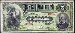 - Bank of Hamilton, gegr. 1872, 1924 fusioniert mit dem Vorläuferinstitut der Canadian Imperial Bank of Commerce. Als letzte Serie begab man eine Gedenkausgabe zum 50. Gründungsjubiläum 1922.
