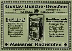 - ↑ Inserat im Adressbuch der Stadt Meißen von 1912.