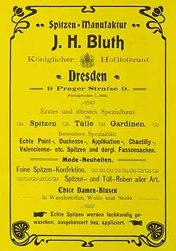 - J. H. Bluth, Spitzen, Tülle, Gardinen, Dresden, Prager Straße 9[3]