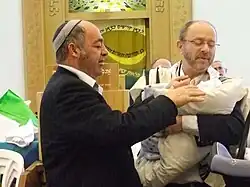 - Daumen, sowie Ring- und kleiner Finger, werden von Zeigefinger mit Mittelfinger abgespreizt (🖖): Aaronitischer Segen. Die Geste wird als Nachbildung des Buchstabens Schin des hebräischen Alphabets interpretiert, das den ersten Buchstabens des Wortes (El) Shaddai („der Allmächtige“) abbilden soll.[8]