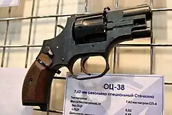 12.3x40mmR (UDAR-TS) 12.3x22mmR PM32 (UDAR-S) 9x18mm Makarov, 9x17mm Short (R-92) |