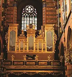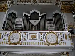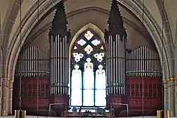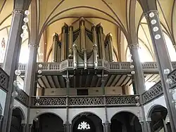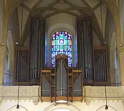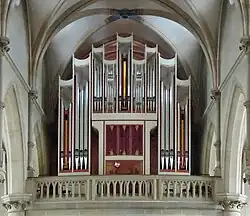 IV/P | 62 | Neubau unter Nutzung einiger Stimmen aus der Vorgängerorgel III/56 im historischen, vergrößerten Gehäuse. Restaurierung der Chororgel II/14 von 1912 und Anbindung an den Spieltisch der Hauptorgel.[47] |