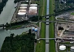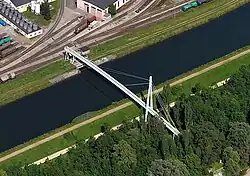 Albert-Kanal | Visé | Einhüftige Schrägseilbrücke mit Fachwerkleitungsträger, Albert-Kanal Flusskilometer 11,59.[4] | Wallonische Region | |||