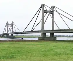 Waal | 267 | Beton | 1974 | je 2 Seile in Betonummantelung büschelförmig; 2 Pylone. Einzige dieser Art in NL | ||