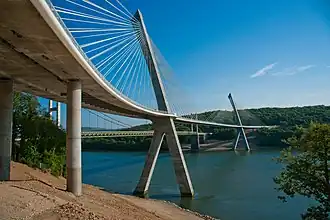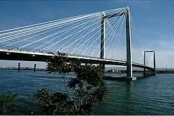 2002 | 10 Fahrspuren; breiteste (56 m) Schrägseilbrücke der Welt | |