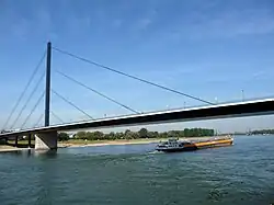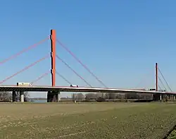 Rhein | 280 | Stahl | Hellmut Homberg | 1965 | je 2 (× 2) Seile harfenförmig, 2 Mittelpylone. Wird durch Neubau ersetzt. | |