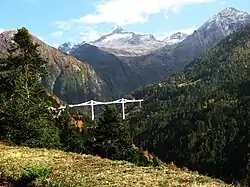 1972 | 3 Seile (2×2 und 1×1) an Mittellinie; schrägstehender A-Pylon mit Restaurant auf der Spitze; 6 Seile Rückhaltung | |