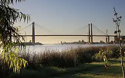 1967 | je 20 Seile fächerförmig; 2 Mittelpylone. Erste Brücke mit Vielzahl an Seilen | |