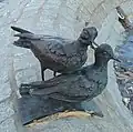 Reiner Friedrich (* 1940)[2] | 1983 | In Herten gibt es mehrere Kunstwerke im öffentlichen Raum, die Tauben darstellen, da Brieftauben „das Lieblingstier der Bergleute“ waren und als „das Rennpferd des kleinen Mannes“ galten.[2] Die Kupferbronze-Skulptur eines auffliegenden Taubenschwarms wiegt 2,5 Tonnen. 2020 wurde der Brunnen saniert.[3] – Siehe Liste von Kunstwerken im öffentlichen Raum in Herten. |