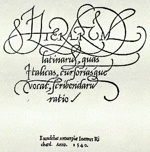 So erschien wohl noch 1540, spätestens bis März 1541, das Literarum latinarum als schriftenkundliches Kompendium. Die Kursive mit ihren vereinfachten Buchstaben war dabei nicht von Mercator in den Niederlanden eingeführt worden. Bereits zu Beginn des 16. Jahrhunderts tauchte sie auf Drucken des Aldus Manutius des Älteren statt der gotischen Antiqua auf. Bereits Mercators Lehrmeister Gemma Frisius wandte die Schrift an.[1]