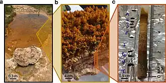 - ↑ Alle drei markierten Schichten wurden Metagenomik-Analysen unterzogen, Layer C auch der Einzelzellanalyse.[13]