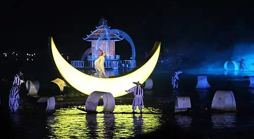 Bei der 70-minütige Licht-Show auf einer Naturbühne am Li-Fluss tragen die Darsteller traditionelle Kleidung der Zhuang-, Miao- und Yao-Minderheiten, die mit zahlreichen Leuchtdioden versehen sind. Der Eindruck steigert sich noch dadurch, dass zwölf umliegende Kegelkarstberge bei der Show beleuchtet werden und sich im Fluss spiegeln.