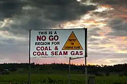 Die Landwirtschaft auf den Liverpool Plains wird von der Ausweitung der Suche nach Kohlevorkommen durch BHP Billiton bei Caroona und der China Shenhua Energy Company bei Watermark bedroht, die zusammen mit Santos nach Coal Bed Methane bohren, einem Flözgas. Zunehmender Protest, angeführt von der der Caroona Coal action Group[3], führte zu einer Blockade von Testbohrungen.[4] CCAG setzt sich für eine unabhängige Untersuchung der Auswirkungen von Bergbauaktivitäten auf das Grundwasser vor jeglicher Bergbauaktivität ein.